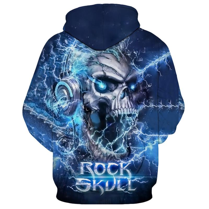 3D Blue Lightning DJ skull Printed Fashion Hoodie Sweatshirt Cool Pullover EUR SIZE